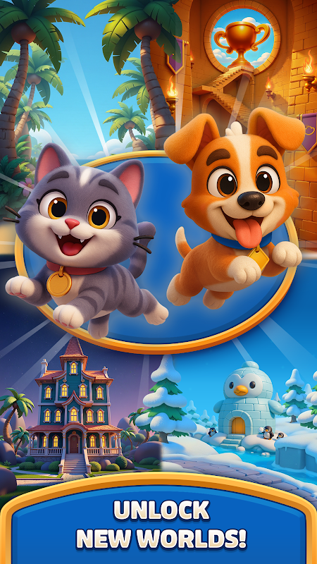 In Pet Panic, you’ll match your way through vibrant worlds to help two adorable pets, Buddy and Luna, escape tricky situations and outsmart mischievous critters. With each puzzle you solve, you’ll unlock new areas, conquer clever obstacles, and bring the pets one step closer to safety!