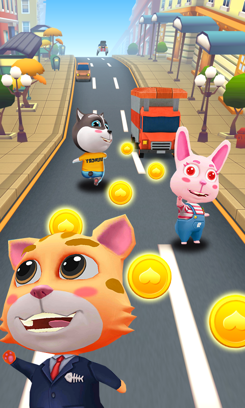 Take your loved pet: cat, dog or panda on a fun adventure through the park, city and forest. Run, slide and leap your way across the city road or subway scenes, careful the coming bus or trains. Dash forward as fast as you can, dodge obstacle and collect coins! Take a trip down a fun park slide to reach mega heights!