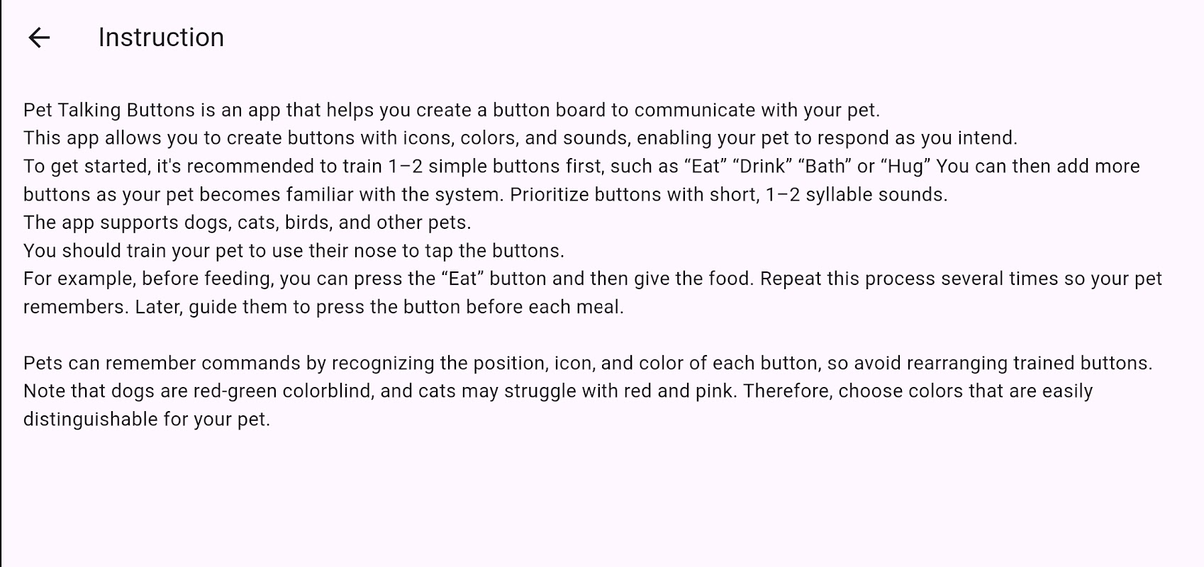 Pet Talking Buttons lets you create simple, interactive buttons that help your dog, cat, or other pets communicate with you.