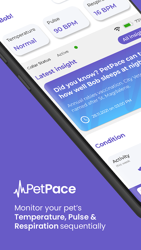 Dashboard - A daily overall status indicator provides an at-a-glance assessment of your pet's current health and wellness condition; Customizable widgets let you focus on what really matters; Dive into high-resolution data for minute-by-minute tracking of your pet's condition and whereabouts; and educate yourself with freshly updated health-related pet content.