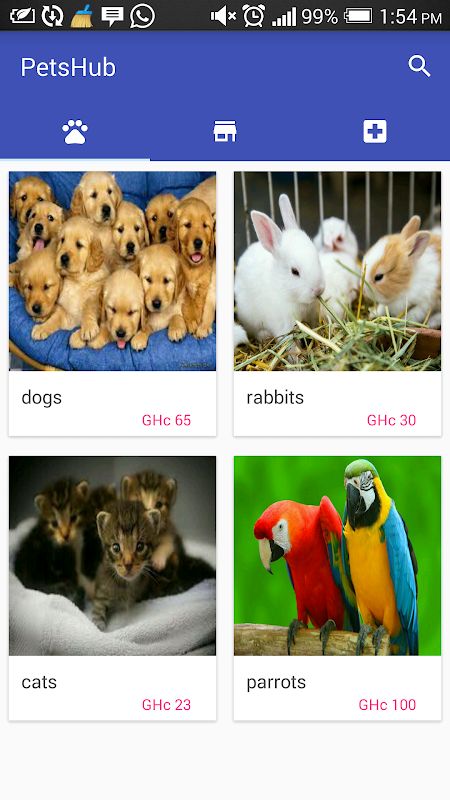 With this template you can create your own pets shop app