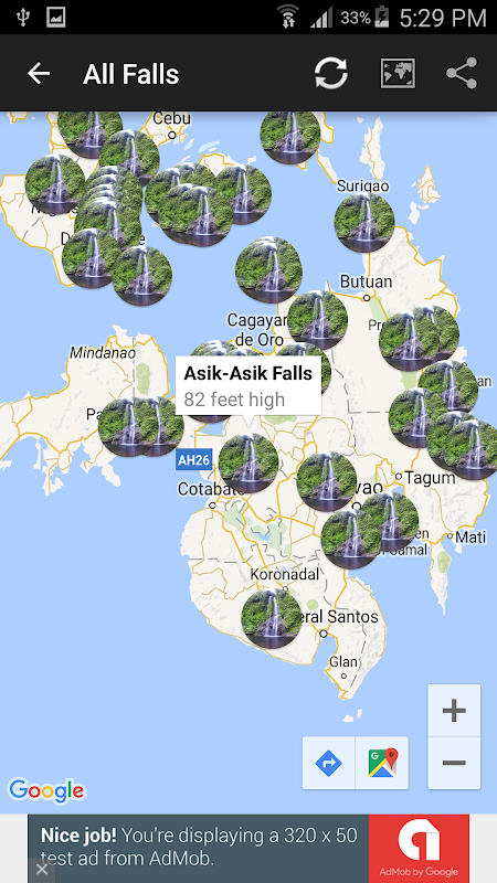 • Waterfalls can be sorted alphabetically, by height, or by location (Find out the nearest falls around you!)