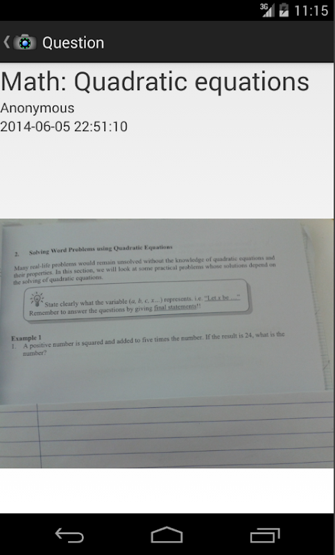 This query will be then shared with everyone who has this app. Students looking to help others, or just wanting to practice the questions can help to answer the question, also answering through taking a picture.