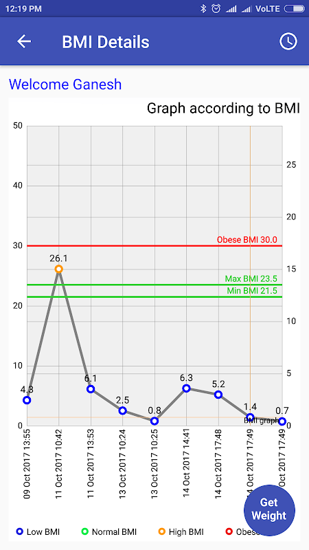 This app connects to a Phoenix Person Weighing Scale by BLE Bluetooth technology, gets your weight and tracks your health based on BMI values. BMI stands for Body Mass Index and is derived from the weight and height of a person. Your BMI value is used to categorize you as either underweight, normal weight, overweight or obese based on internationally accepted values. The App also shows how underweight / overweight you are and also displays your normal weight range. You can view the corresponding graphs and strive to have your health reach the 'green' range. You can store complete health data of upto 100 records for 6 users in this app. With the 'Reminder' feature, you never miss monitoring your health timely.