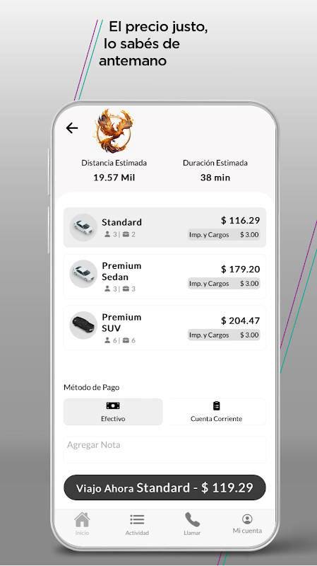 - You will know immediately who your professional driver will be and the vehicle information.