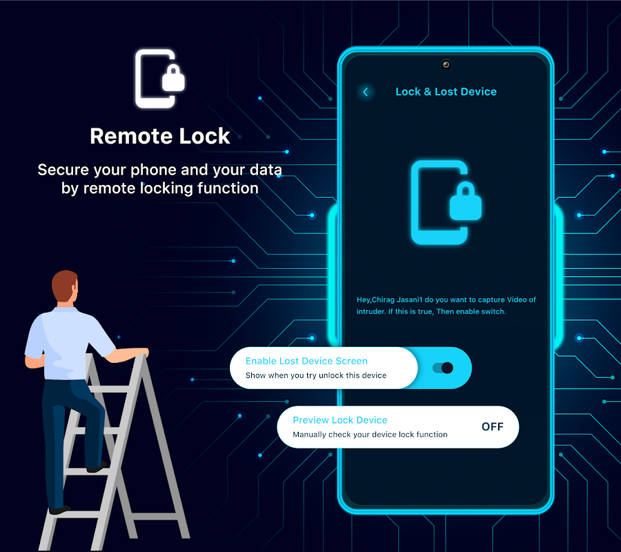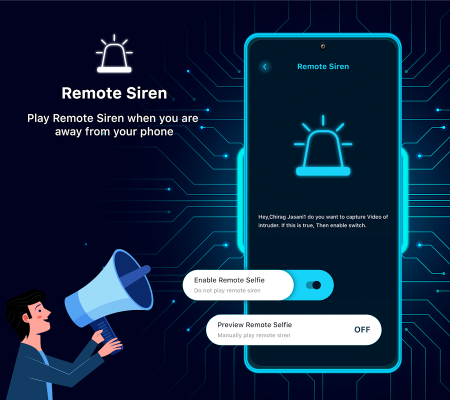 • Show a full-screen message on your phone. If someone dismisses it, a selfie is sent to you.