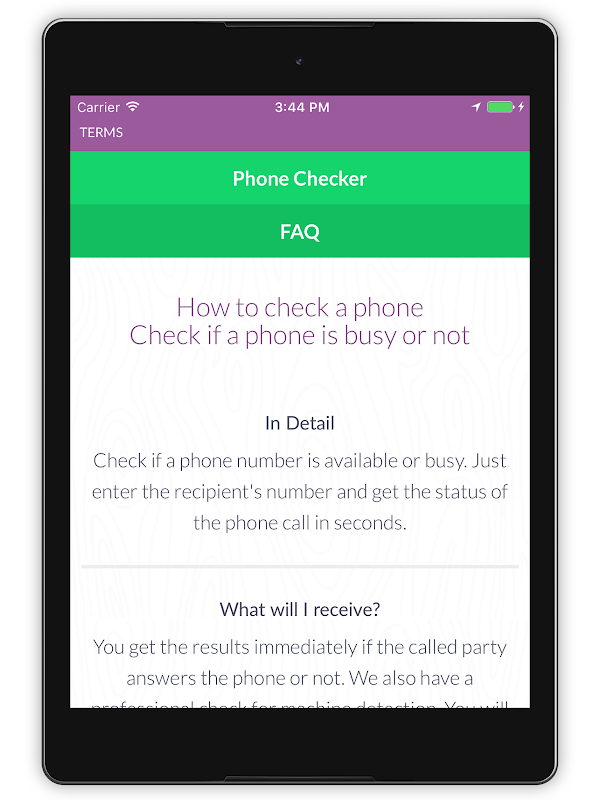 You get the results immediately if the called party answers the phone or not. We also have a professional check for machine detection. You will get a detailed evaluation if the phone was available, answerd by mailbox or if the recipient answered the call.
