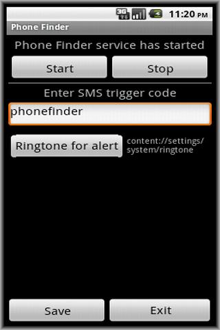 To configure, tap Start to start the service. Enter your SMS trigger code. Enter the ringtone for alert. Tap save.
