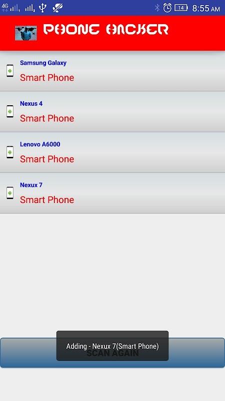 This Phone Hack Simulator app will loosen up all knots to show you what is present inside those devices. It just checks the Bluetooth connection of that particular device and hacks all the information present there in all folders and copies those into your phone. It will show you all the nearby devices whose Bluetooth connection is ON and its up to you who's device you want to expose !!!