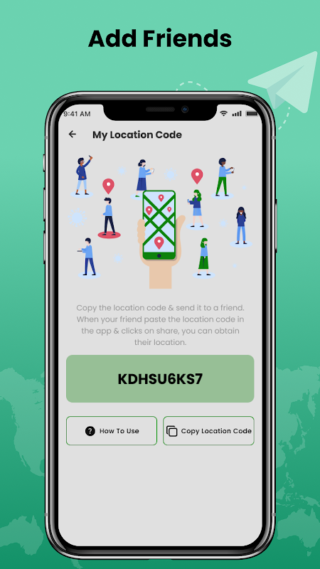 • Your code to share location is ready, now you can share with family & friends.