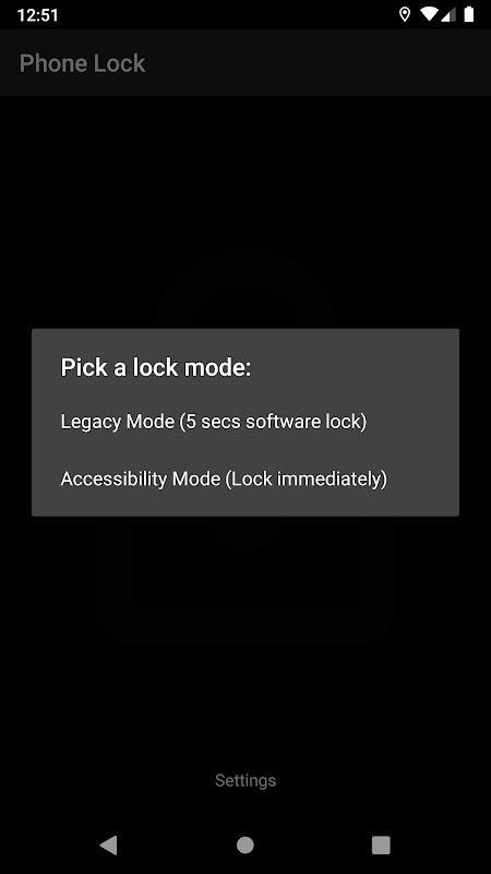 Please enable this app at Accessibility -> Downloaded services -> Phone Lock -> On