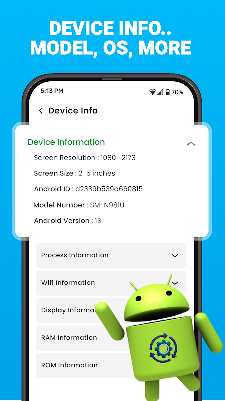 • Access detailed info about your phone's specifications.