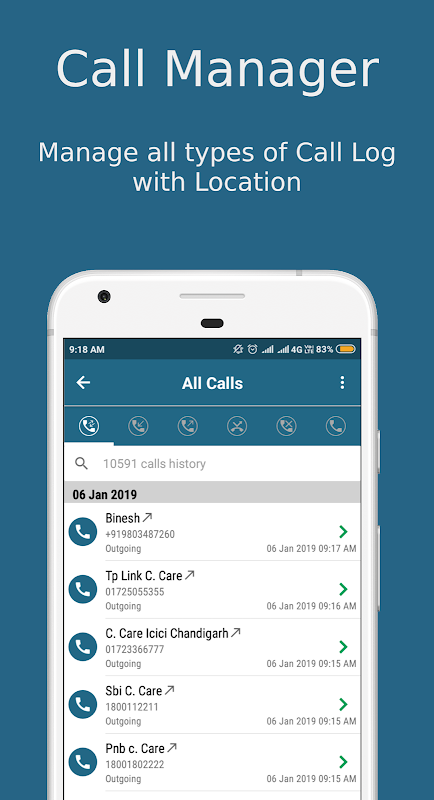 • Call Manager keep your call history forever and list them category wise for ease of access. Quick and advanced search options helps you to easily access data you are looking for.
