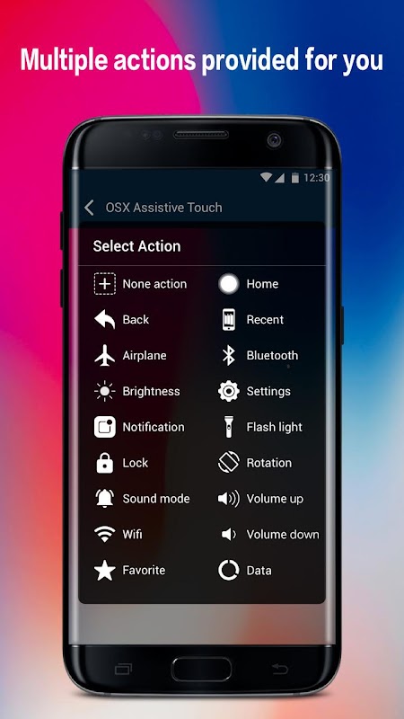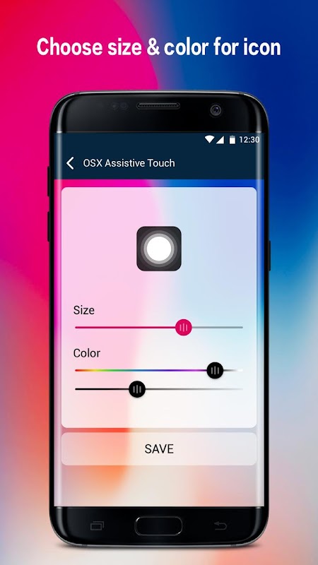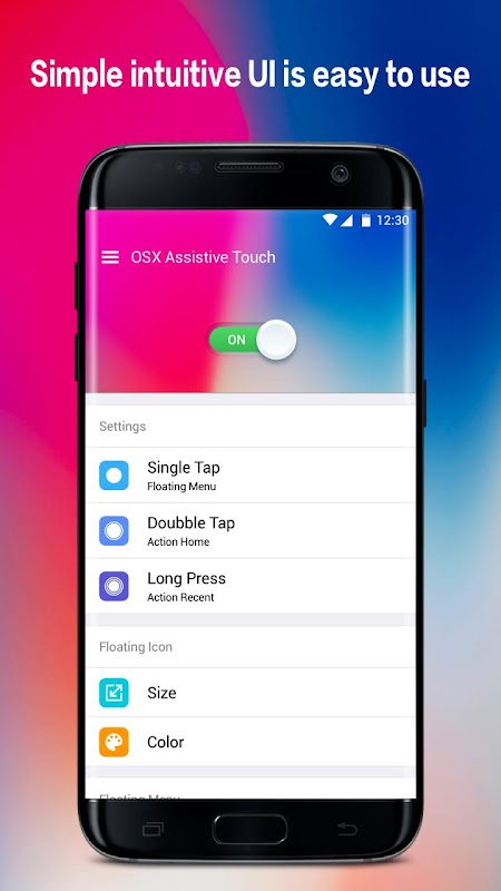 If you want to make your Android phone easy to operate, the Phone X Assistive is an ideal choice for you. When you turn on Assistive Touch, you will see a floating icon on the screen. You can change the size and color for the icon and menu as you like. The Assistive Touch will make your phone more convenient. You can do many actions with assistive touch such as back home screen and adjust volume, so the Phone X Assistive will also protect the buttons of your phone!