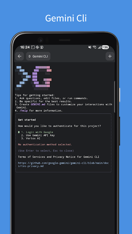 AI coding with Gemini CLI. Edit code, manage files, use Git build on your phone.