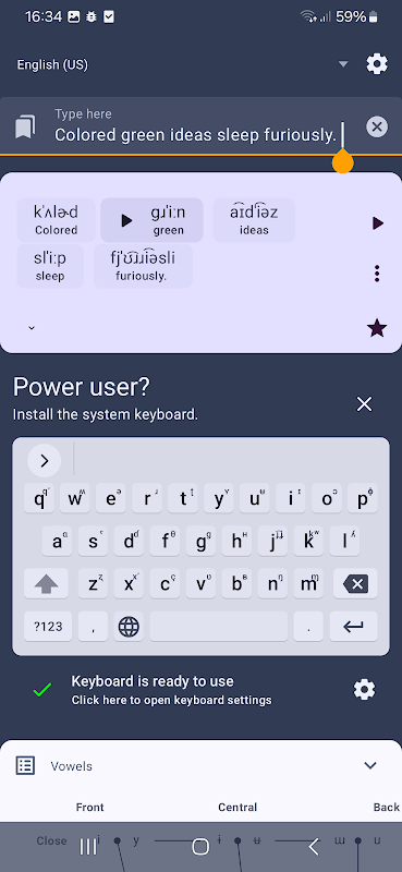 Power users can install an IPA system keyboard by purchasing the full version.