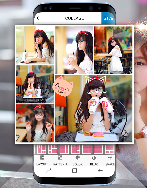 More than 100 stickers and emotions. Photo auto save to sdcard/PhotoCollage