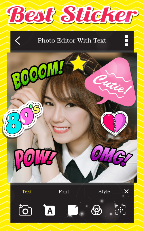 App Photo Text On Image In Style as same as Text Camera your personal font studio, photography lovers! Write Text on Pictures is a new app free "text photo editor" which lets you write on pictures of your cherished moments, add cute quotes, love messages and watermarks! If you are a fan of apps that let you "write words on pics", picture decorators, editors with stickers and stamps, you are going to adore this “text on pictures” photo editing, download this free text camera photo now! Edit the text camera on your cute pics with this photo editing app!
