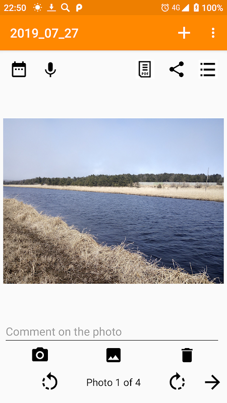 The application helps to create a pdf file containing photos and comments to them and send this file by e-mail or via messenger.