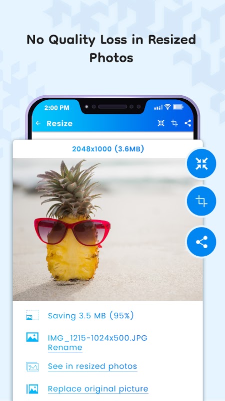 Whether you're looking to reduce photo size, save storage, or quickly share images via email or social media, our app has all the features you need – including advanced custom resizing, smart cropping, and one-tap image compression.