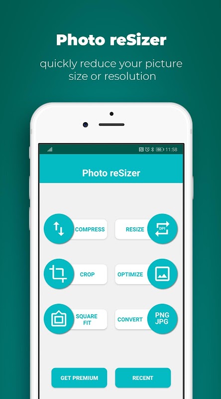 PhotoreSizer helps you quickly reduce your picture size or resolution. Optimize your images with a perfect balance in quality and file size. Photo reSizer is also a super easy to use application to crop and
