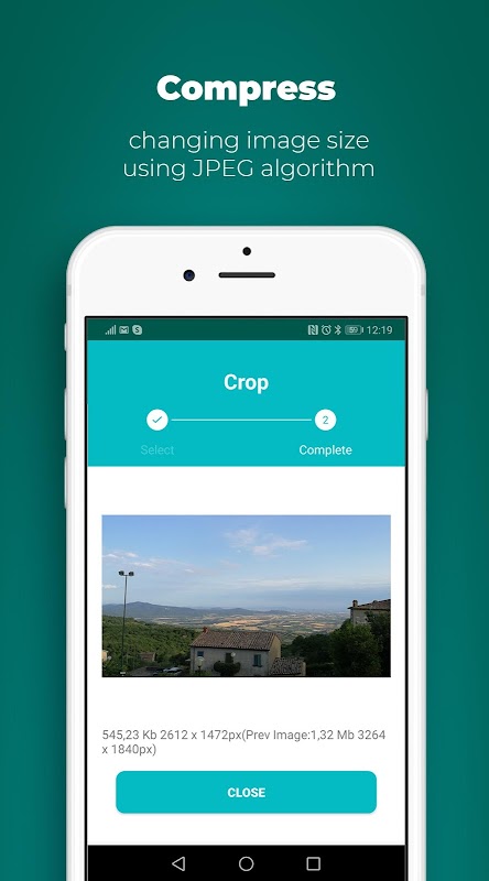 * Compress – changing image size using JPEG algorithm (method of lossy compression for digital images) reducing image size.