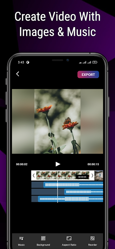 * Make your video slideshow even more attractive by putting a background music from the gallery.