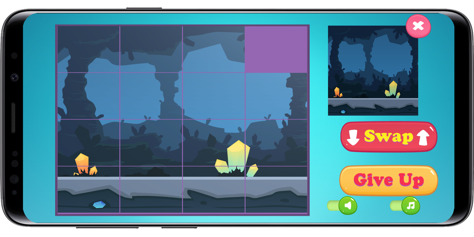 You have to reassemble a picture each time sliding tiles. Player has an option to swap the position of any two pieces or give up. After finishing the level, the image is labelled as a complete, and you can go straight to the next one. Any time you can reset the game progress in the main settings.