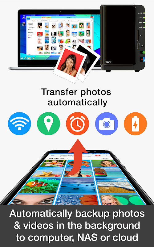 • Automatically backup photos & videos directly from your Android phone / tablet to computer (PC & Mac) over WiFi