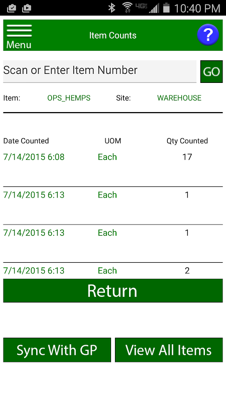 This app allows you to efficiently count your inventory and sync with Microsoft Dynamics GP. The following features are available.