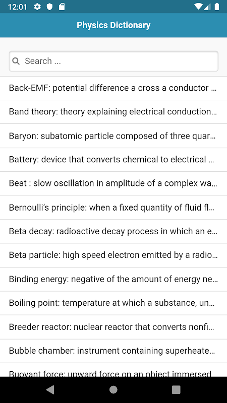 Physics Dictionary contains all essential terms and definitions for all grade physics students. You will able to learns terms and definitions from this app. You will able to search and learn Physics terms.