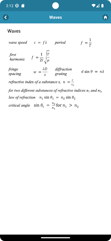Learn all essential formulas and equations of physics with Physics Equations app – your comprehensive mobile companion for mastering the fundamental principles of physics! Whether you're a student, educator, or enthusiast, this app is designed to help you anywhere you go!