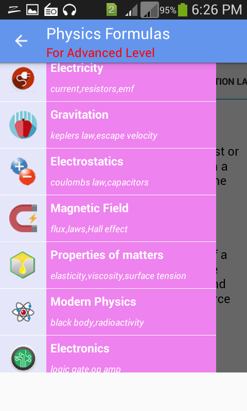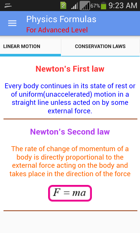 Physics formulas has been developed and released to help users quickly refer to any Physics formulas for their study. This app displays most popular formulas in 13 categories: