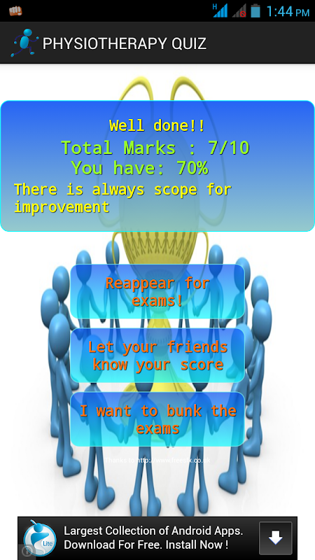 World's first free physiotherapy quiz on android platform for physiotherapy students and workers. Learning would be so easy and fun as there are various interesting sound effects and beautiful layout.You would be asked questions of any difficulty level randomly from any topic related to physiotherapy and allied subjects.The most commonly and important questions that have been asked in various entrance exams have been selected.