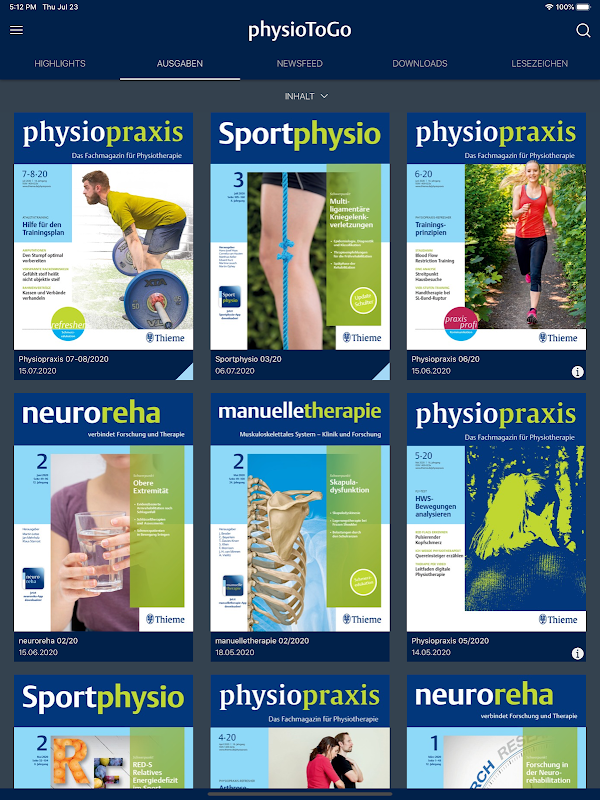 One app, one topic, four magazines - with the physioToGo app you will find the world of physiotherapy in one place.