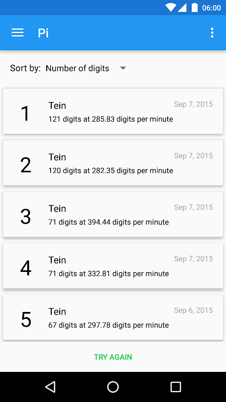 - Timed mode lets you type the digits from the beginning of the number and measures the time until the first error. See how many digits you typed per minute and improve on your achievements on the highscores page.