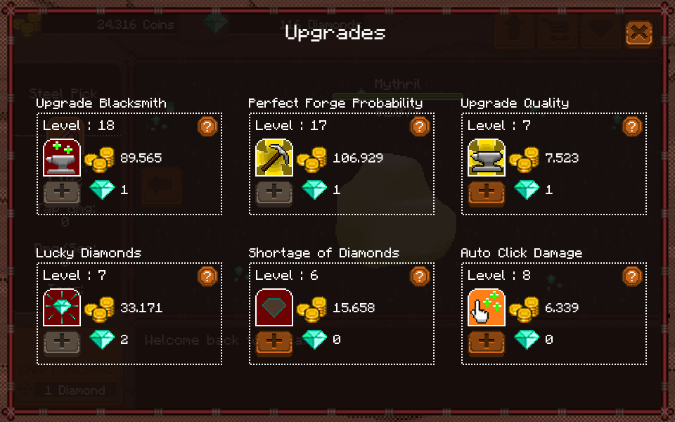 It’s obvious that the more power you put in, the more will be the damage. But a lot depends upon your tool as well. If your pickaxe isn’t strong enough or has a blunt edge, how can you expect it to break the hardest materials in a single shot! As you dig deep into the stones, you’ll find coins and diamonds. You can use these coins to upgrade your tools. You can forge new tools using the resources such as Blacksmith and the more coins you have, the better is the Blacksmith to carve out more powerful tools. You can use these coins to upgrade your Perfect Forge Probability as well. There are many more upgrades available in the shop and they determine the distance you’ll travel below the surface of Earth.