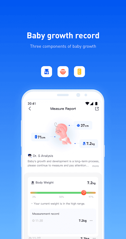 You can use the PICOOC APP to record the baby's physical data during the growth process, including weight, head circumference, body length and other data. PICOCC will analyze the baby's growth for you through the data you have recorded.
