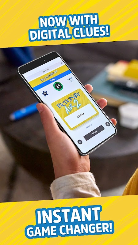 Pick up the Pictionary Air™ 2 upgraded pen (sold separately), connect it to the app, unlock clues and get your air-drawing game on! Clear the screen and add points directly from the pen. You can also save and share videos of all your funny gameplay moments! Several themed digital clue packs are also offered as an in-app purchase, so you can keep on playing!