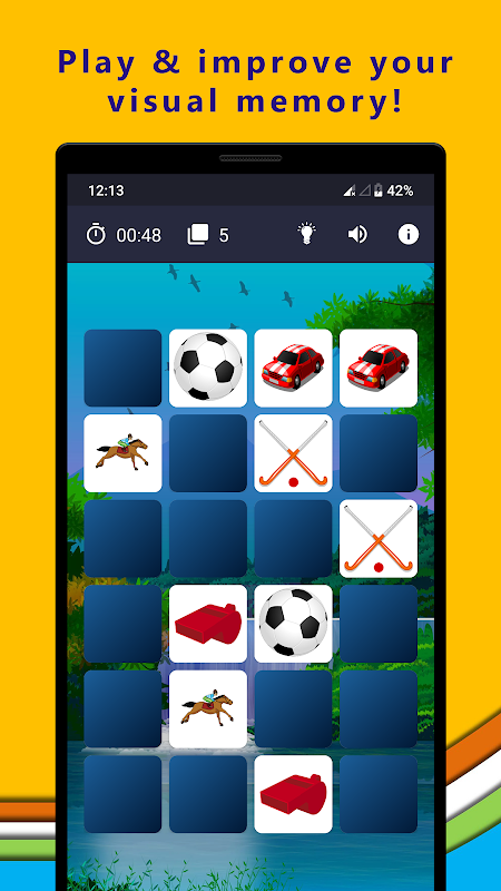 ✔️ Practice and improve your skills with this memory game. The more you practice finding pairs, the more efficient you will become with your memory.