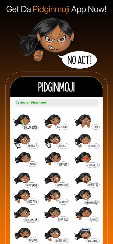 Pidginmoji Vampires provides unique, fun, stickers with a local flavor. These stickers are a great way to liven your texts with engaging and happy Pidgin phrases. Enrich your conversations with emoji that reflects the Hawaiian islands through the local language of Pidgin.