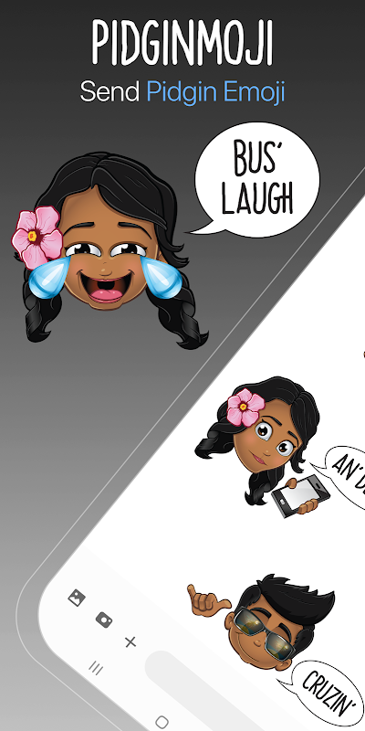Pidginmoji provides unique, fun stickers with a local flavor. These stickers are a great way to liven your texts with entertaining and happy Pidgin phrases. Enrich your conversations with emoji that reflects the Hawaiian islands through the local language of Pidgin.
