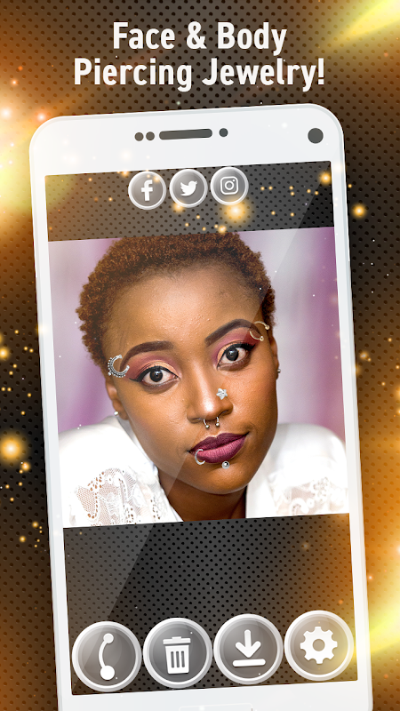 If you have ever wondered 'what would i look like with piercings', our 💠 Piercing Photo Editor - Add Piercings to Photo 💠 free app will give you the answer. Find it out in the best “piercing photo studio”! Get body jewelry and tattoo piercing camera with photo stickers for amazing face change and virtual makeover. Add piercing stickers to your body and face and try out most realistic earrings, “nose piercing”, ear piercing and lip piercing picture stickers or any other body jewelry design. Be different, stand out from the crowd, download piercing photo booth editor and try on “piercings stickers for pictures” and face beauty makeup camera effects! Edit your pics in a fun way with beauty makeover app and piercing photo editor for girls. You can also start the most professional photo editing ever with “piercing and tattoo app” and “piercing ear photo editor for boys”! Manipulate your pics easily in your personal piercings photo editor and create funny photo montage.