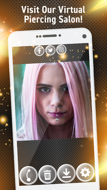 💠 Piercing Photo Editor - Add Piercings to Photo 💠 is amazing body piercing camera booth. Get face piercing in trendy piercing salon for free! Have the best facial treatment using piercing ear photo editor for boy or piercing photo editor for girls with snap filters and effects. Tattoo and piercing photo app is a cool body and face changing app that you can use to create fake piercings and tattoo designs anywhere on your body. Editing pictures has never been so cool! Enjoy the best selfie camera app and virtual salon with cool pic stickers and effects free download!