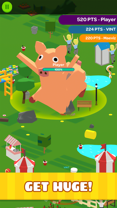 Piggy io - Pig Evolution is one of io games about funny hungry pig evolution. Piggy games are incredibly fun and dynamic. You will be captured by these pig games. Start a pig io game with a hungry piggy and evolve with each level. The piggy games rules is simple - go through all stages of pig evolution. The pig can evolve and turn into different creatures in pig games. Collect coins at the piggy bank and upgrade your piggy in io game. Evolve into other creatures from the hungry pig. This is a pig games where you can eat everything: coins, flowers, trees, stones, mills and even home. Start piggy games and complete all levels of the incredible game.