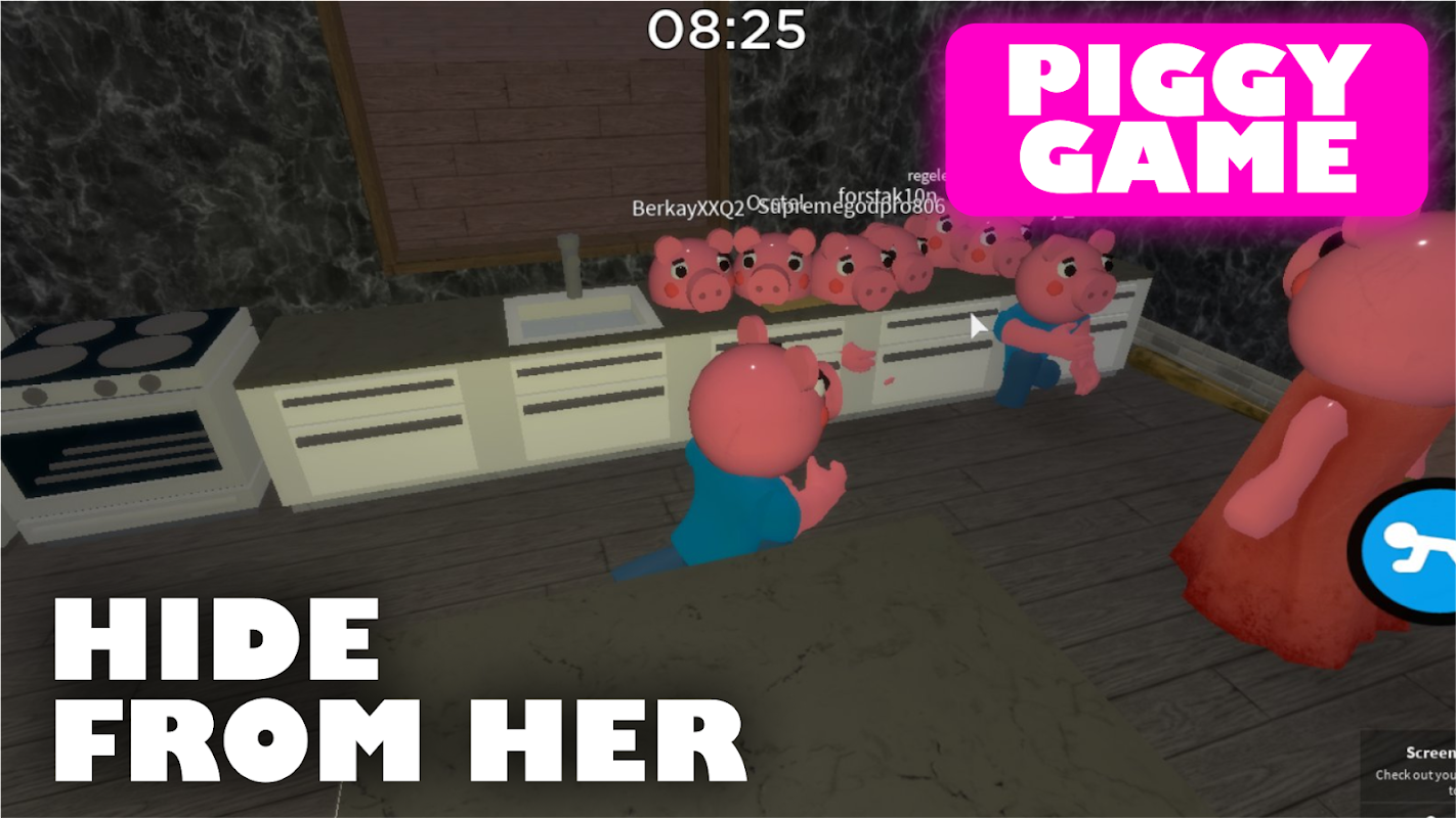 Are you afraid to play Horror mod for roblox? If you are not afraid and you want to play, then try horror mod piggy for roblox! Everything happens on a normal day when you went out for a walk and didn't notice how it got dark outside. You decided to take a shortcut and you were hit with something from behind, when you woke up, you realize that you are not in your house. You decided to look around, pulling all the doors in a row, the main door to the street was locked, and the windows were boarded up! When you open the last door, you see a scary creature - this is the Piggy Infection mod. An evil pig has attacked you and locked you in his house, your main task is to escape! Escape from Piggy Infection did not think and did not hide some weapons, so try to find it before her! Piggy for roblox keeps the key to the main door in his room, try to distract her and pick up the keys. She also has a garage in which there is a car. This horror mod piggy for roblox is a pretty scary mod, maybe if you call your friends to get out of the house it will be easier. Escape from Piggy Infection is a very scary mod, so I advise you to familiarize yourself before the game. Look for the keys and escape from this Piggy Infection mod, good luck!