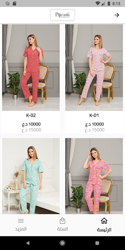 Application for displaying the products of Pijamia