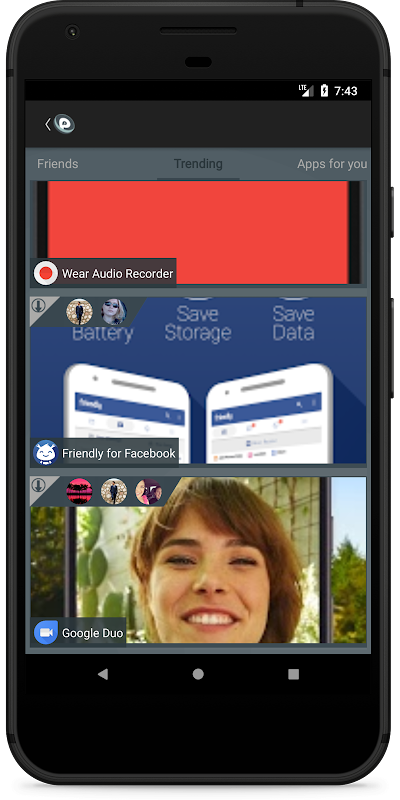 Pinapps built a state of the art suggestion engine that recognizes your personal needs based on your profile, what you and your friends like, the global app trends and recommends to you a tailored and up to date selection of applications