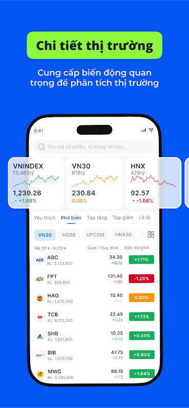 • Collecting general information, quickly and conveniently thanks to the integration of company profile data, transaction history, financial reports, news and events of the whole market from many accurate and transparent sources. .