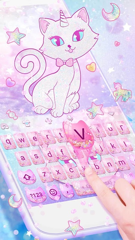 Pink Glitter Unicorn Cat Keyboard Theme is the best keyboard for girls!